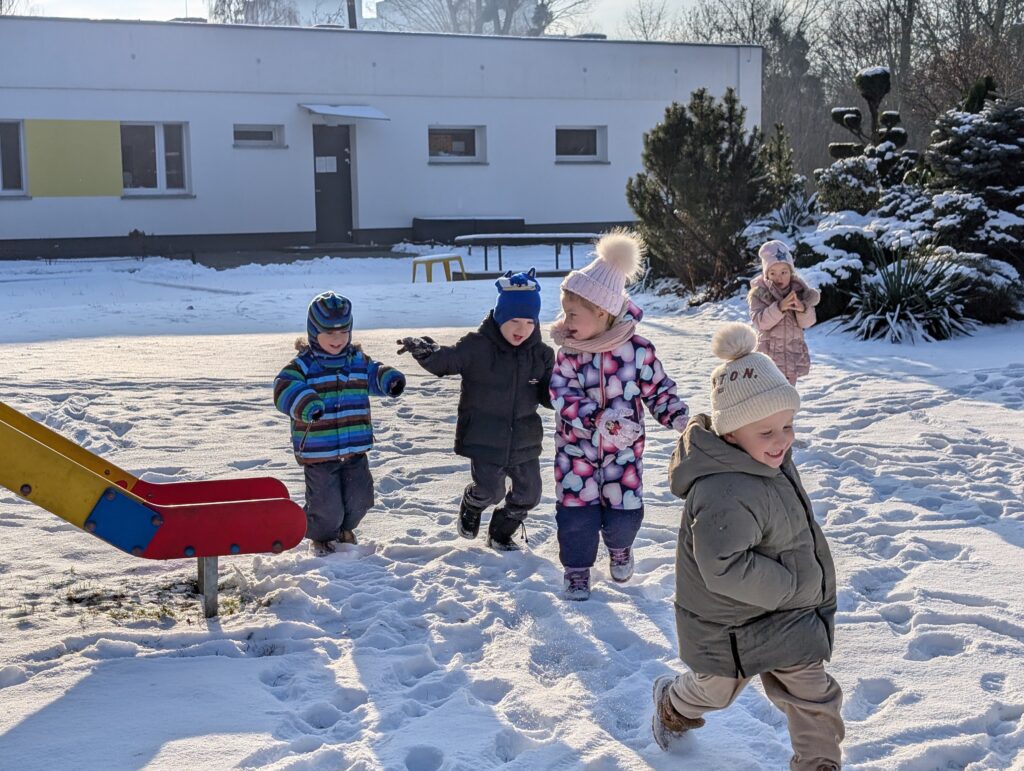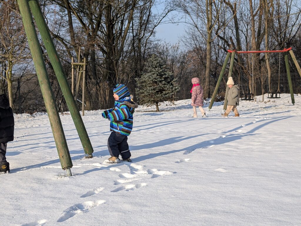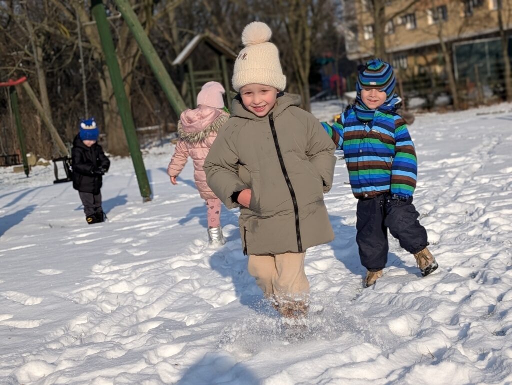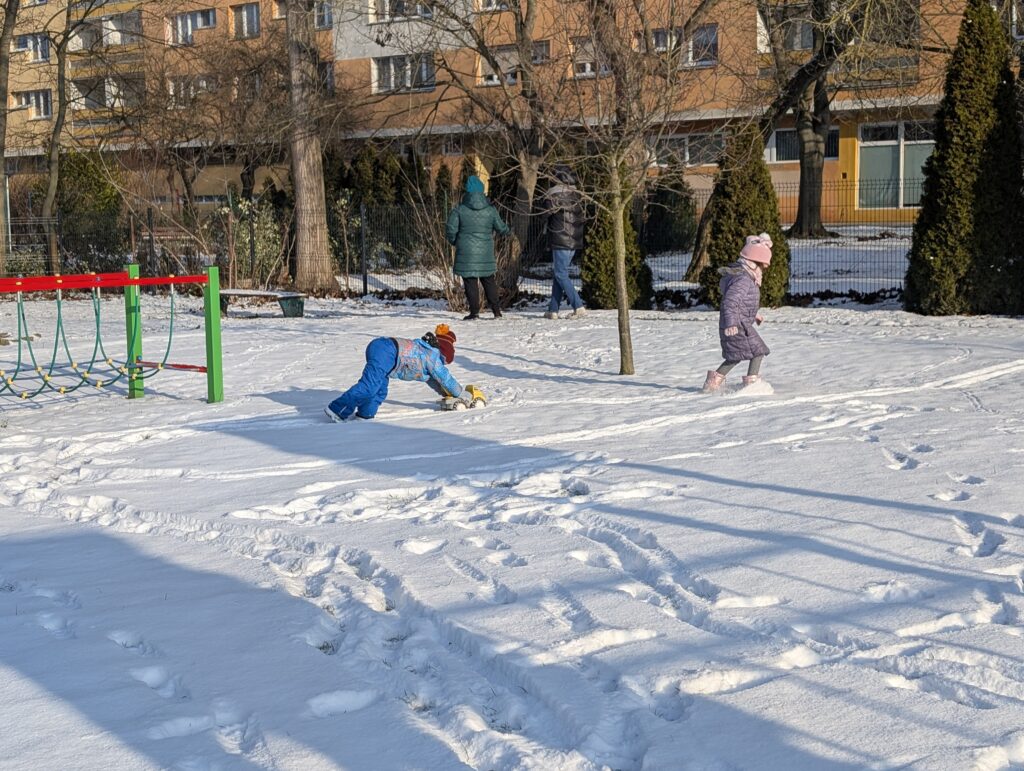 Zimowe zabawy Świerszczyków na śniegu